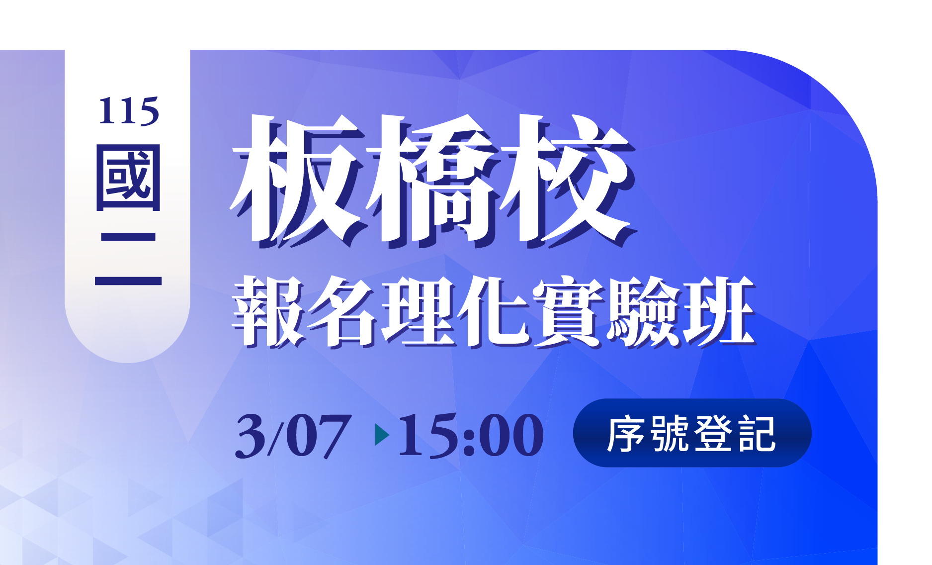 此為《115國二理化課程》線上報名登記序號 (報名課程並非免費)