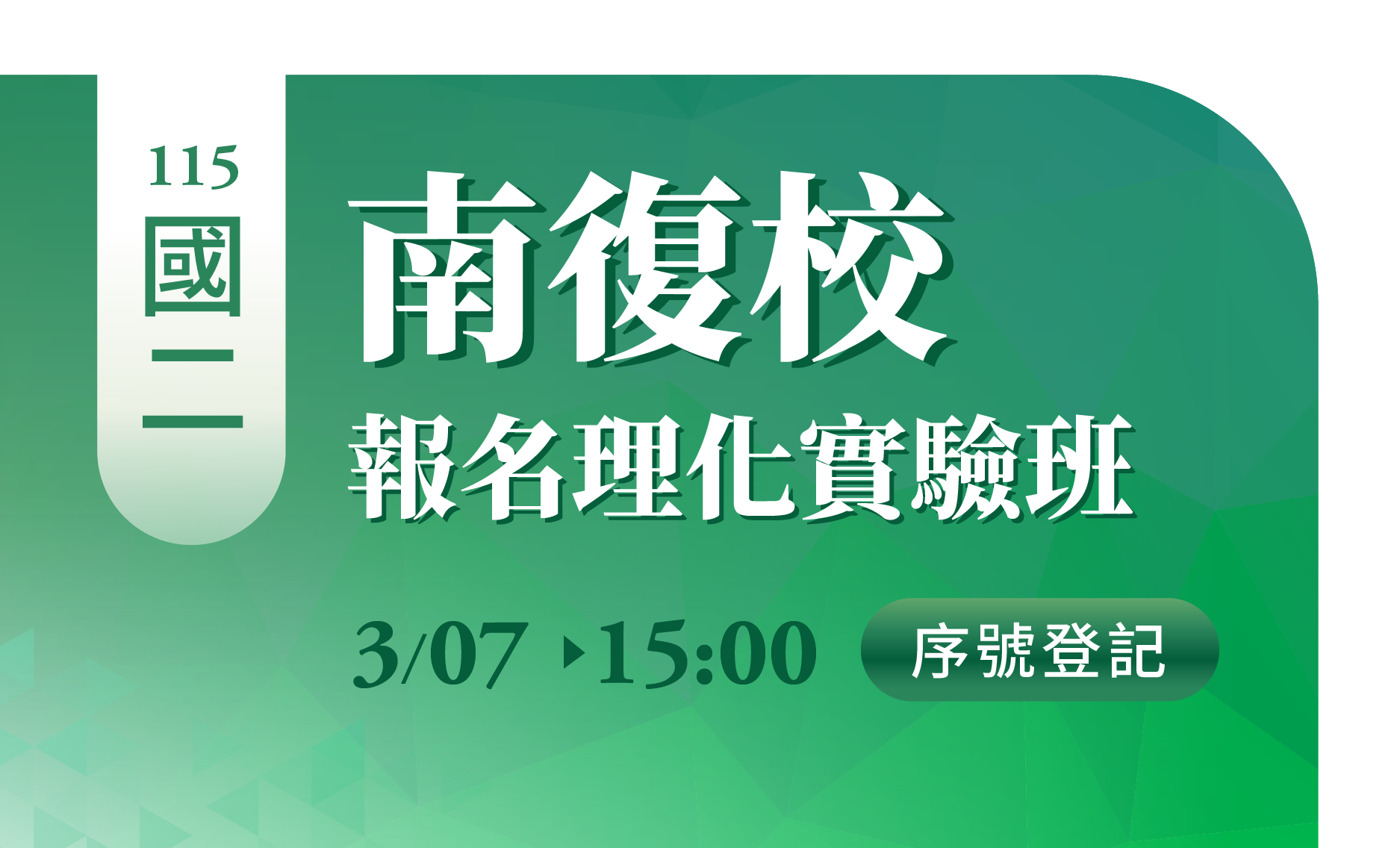 此為《115國二理化課程》線上報名登記序號 (報名課程並非免費)